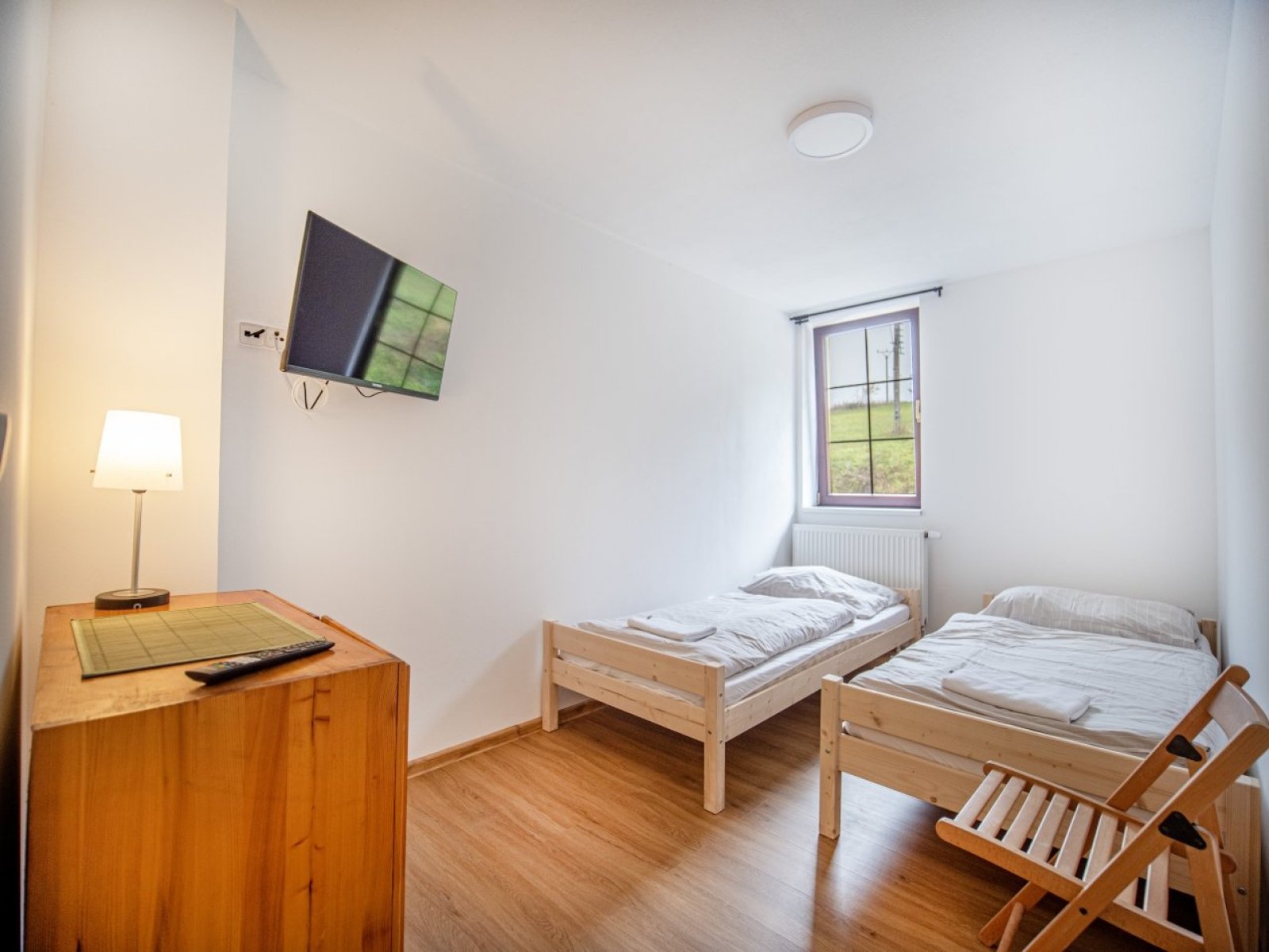- 1 ložnice s dvěmi lůžky a průchozí místnost s dvoupalandou